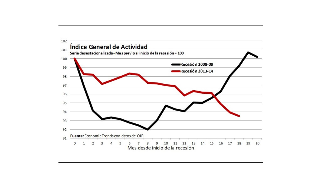 Luego de 18 meses, la recesión actual todavía no terminó, y el nivel de actividad es casi 7% inferior al nivel previo al inicio de la recesión.