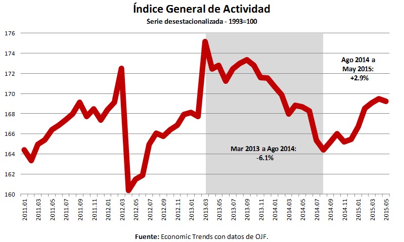 El gráfico muestra claramente la recuperación desde el mínimo registrado en agosto, sin recuperar todavía el nivel previo a la recesión.