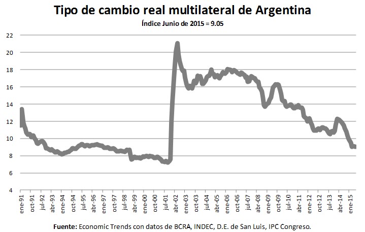 Tan fuerte ha sido esa pérdida, que la competitividad cambiaria está hoy un 47% por debajo del nivel que tenía en diciembre de 2007, y apenas 4% por encima del nivel de fines de 1997, en plena Convertibilidad, aunque todavía 19% por encima del catastrófico nivel de diciembre de 2001.