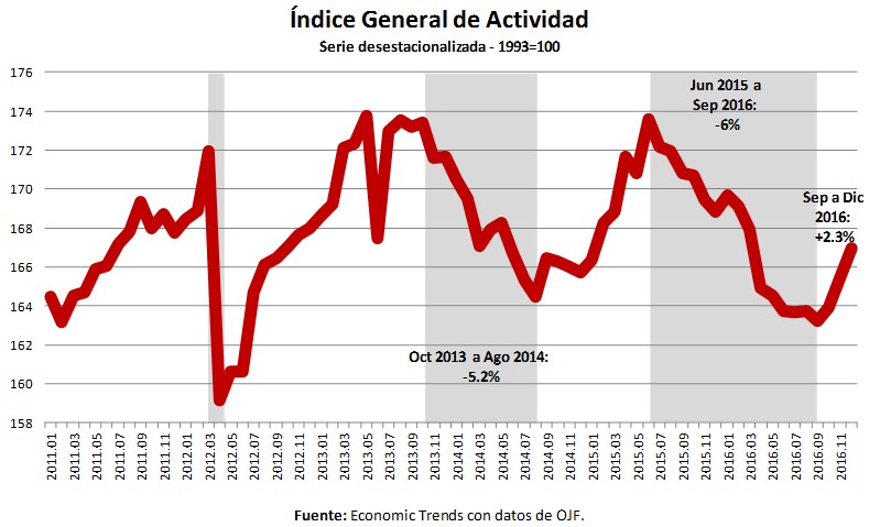 Pero desde septiembre hasta diciembre, último dato disponible, la actividad económica creció 2.3%, porcentaje elevado para un periodo tan corto.