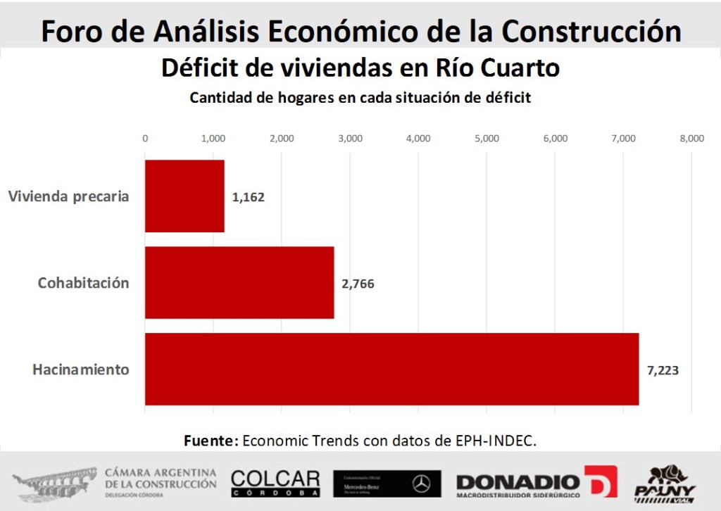 Se trata de 1,162 hogares que residen en viviendas precarias, 2,766 hogares que residen en condición de cohabitación (no tienen vivienda propia, y por lo tanto residen en la vivienda de otro hogar) y 7,223 hogares en situación de hacinamiento (definido como más de dos personas por cada habitación dormitorio).