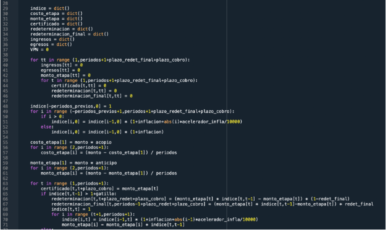 El análisis realizado a partir del algoritmo mencionado permite observar que efectivamente, como indica la intuición, un esquema de redeterminaciones de costos, en un contexto de alta inflación y altas tasas de interés, genera importantes costos que dependen de escenarios macroeconómicos difíciles de predecir para las empresas constructoras, generando grandes distorsiones en los procesos licitatorios si diferentes empresas utilizan distintas proyecciones a futuro.