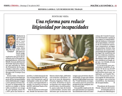 Esto no ocurre en otros países, donde los baremos establecen valores fijos, definidos con criterios científicos, como es el caso de Alemania, Francia, España, Chile, entre otros. El motivo es claro: un baremo con valores fijos, justificados científicamente, para cada tipo de lesión o enfermedad, resulta más eficiente que un baremo con rangos que permitan discrecionalidad, ya que esto último genera litigiosidad innecesaria. Y todo termina en mayores costos para los procesos productivos de cualquier sector de actividad.