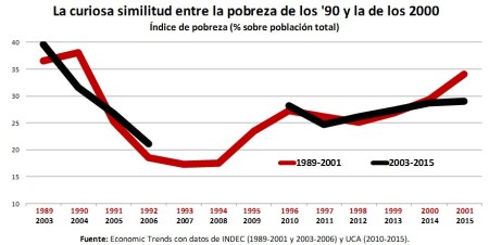 A quienes les haya costado aceptar una pobreza en 2015 similar a la de fines de los ’90 les sorprenderá saber que su evolución fue casi idéntica durante 1989-2001 y 2003-15. Comprender cómo fue posible puede contribuir a reflexionar sobre el problema de la pobreza.