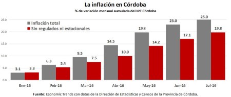 El Ministro Prat Gay planteó una inflación del 25% anual en Córdoba. No se refería a la inflación total, sino a la inflación que excluye precios regulados y estacionales. El pronóstico del Ministro requiere una inflación por debajo del 1% mensual hasta fin de año.