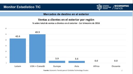 “Durante el primer trimestre de 2016, las empresas de software de la provincia de Córdoba facturaron, en términos anualizados, u$s 366 millones, de los cuales el 23% se generó por ventas a clientes en el exterior”
