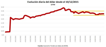 Desde comienzos de marzo, el dólar fluctúa dentro de una banda de $ 14 a $ 15. Con alta inflación, esa banda cambiaria debería subir a lo largo del año, pero es probable que suba menos de lo que se esperaba, dada la gran preocupación del BCRA y el Gobierno por la inflación.