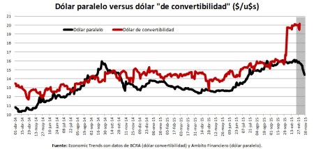 El ritmo de emisión de dinero y el escaso nivel de reservas podrían haber impulsado hacia arriba al dólar paralelo. Y sin embargo bajó, indicando que ahorristas e inversores creen en general que la unificación cambiaria a valores por debajo de $ 16 que propone Macri es posible.
