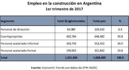 Cuando se discute sobre el empleo en la construcción en Argentina, el orden de magnitud en que suele pensarse ronda los 400 mil trabajadores. Sin embargo, trabajan en el sector alrededor de 1.6 millones de personas, cifra que incluye, además de asalariados formales, asalariados informales, cuentapropistas y directivos de empresas constructoras.