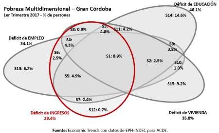Gran parte de la pobreza en el Gran Córdoba es de carácter estructural, es decir, persistente aun en contextos de mejora económica, como el 6.4% de hogares con déficit de ingresos y, además, déficits de vivienda, educación y empleo, entre otros segmentos que suman más de la mitad de los hogares pobres del Gran Córdoba.