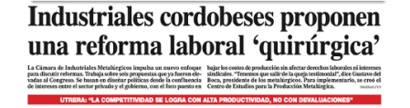 Nota en Clarin sobre las propuestas de reforma laboral desde el sector privado de Córdoba.
